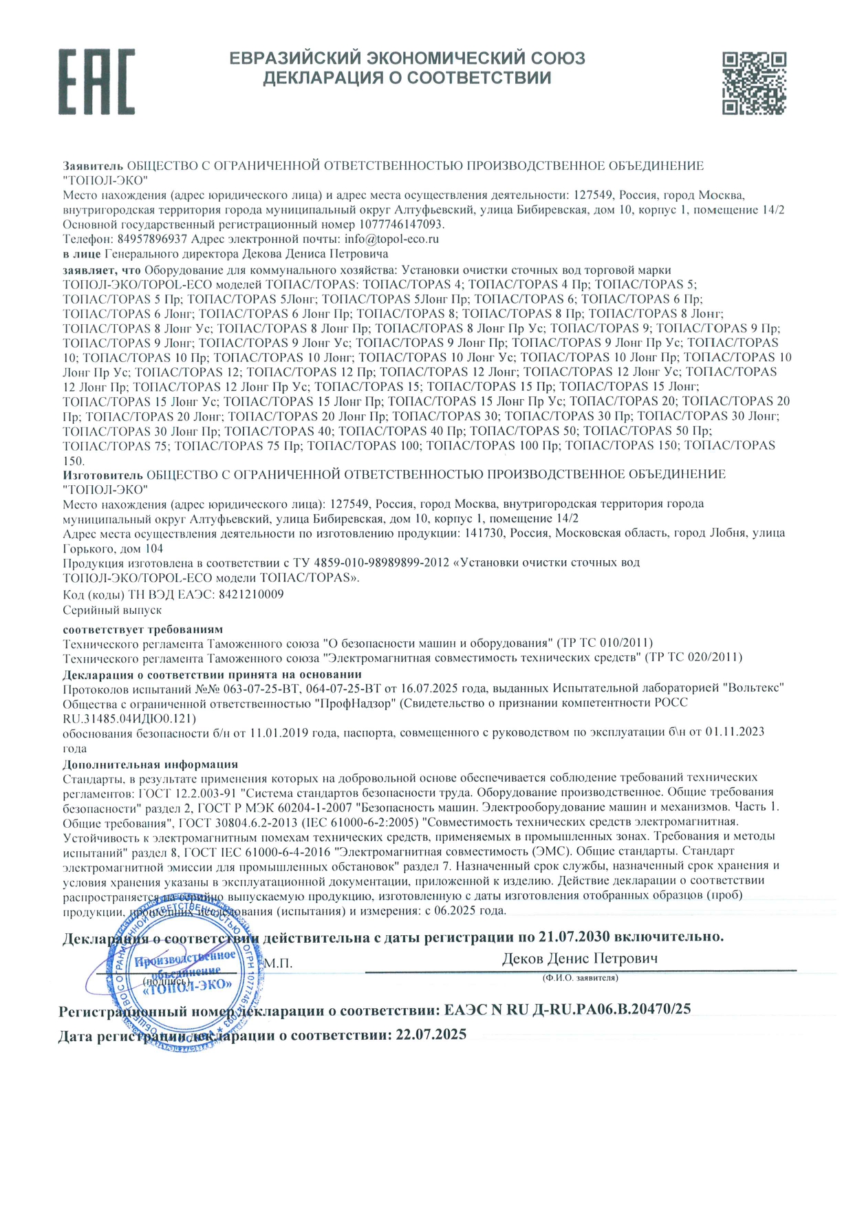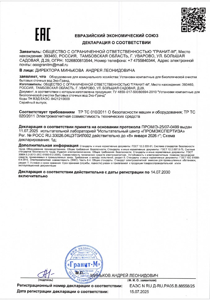 Эко-Гранд 5 Лонг работает при температуре воды не ниже 5°C. При температуре ниже 5°C работа установки может быть нарушена, в последствии чего произойдет утечка активного ила в сток.